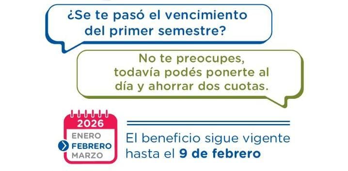 Quienes elijan abonar de forma anticipada podrán obtener descuentos equivalentes a un mes por cada semestre, alcanzando hasta dos meses de beneficio en total. Incluso quienes no hayan abonado el primer semestre en término aún pueden acceder al beneficio si cancelan ambos semestres en conjunto.